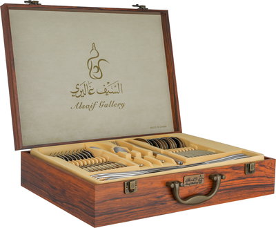 طقم شنطة ملاعق ستانلس استيل السيف غاليري، 72 قطعة - فضي ذهبي