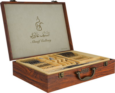 طقم شنطة ملاعق ستانلس استيل السيف غاليري، 72 قطعة - فضي ذهبي