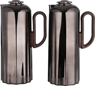 طقم ترامس نجدية السيف غاليري، 1 / 1 لتر، 2 قطعة، حافظة داخلية زجاج، يد خشبي، ضغاط - أسود لامع