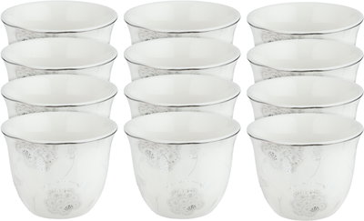 طقم فناجين قهوة سعودي بورسلان السيف غاليري، 12 قطعة - أبيض