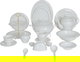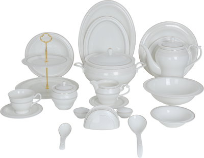 طقم تقديم سفرة بورسلان السيف غاليري، 65 قطعة - أبيض ذهبي