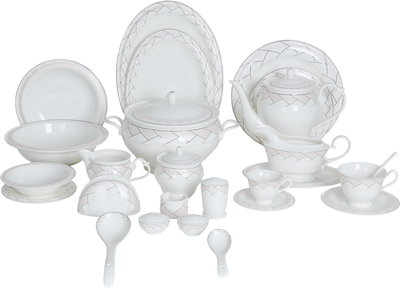 طقم تقديم سفرة بورسلان السيف غاليري، 166 قطعة، نقش فضي - أبيض وردي