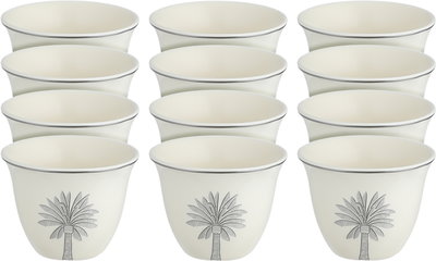 طقم فناجين قهوة سعودي بورسلان السيف غاليري، 12 قطعة، منقوش - أوف وايت رمادي