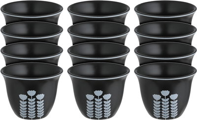 طقم فناجين قهوة سعودي بورسلان السيف غاليري، 12 قطعة، منقوش - أسود أبيض