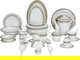 طقم تقديم سفرة بورسلان السيف غاليري، 166 قطعة، نقش فضي - أبيض بني
