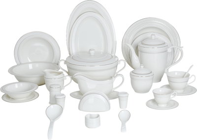 طقم تقديم سفرة بورسلان السيف غاليري، 166 قطعة، نقش فضي - أبيض