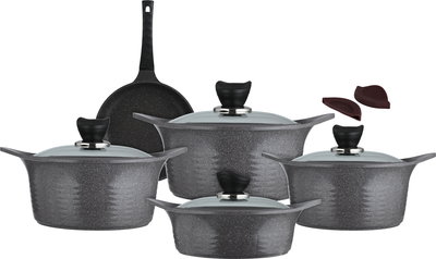 طقم قدور كوري جرانيت تورنادو، 9 قطع، غطاء زجاج - رمادي غامق