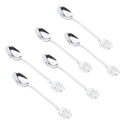 ملاعق شاي استيل السيف غاليري، 6 قطع، بيد وردة - فضي
