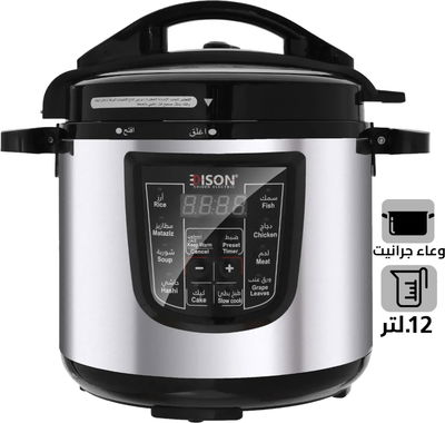 قدر ضغط كهربائي إديسون برو، وعاء جرانيت، 1600 واط، 12 لتر، 10 وظائف طبخ- فضي اسود