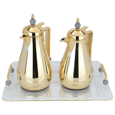 طقم ترامس زجاج السيف غاليري، قطعتين مع طوفرية اكريليك - ذهبي