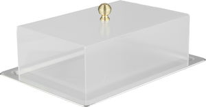 Al Saif Gallery stainless steel serving dish, 38x27x10 cm, acrylic lid, rectangular - transparent silver