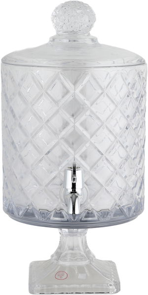 Al Saif Gallery Glass Drink Dispenser, 18.5x18.5x38 cm, Wooden Base and Lid - Transparent Wooden