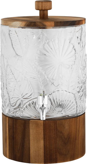 Al Saif Gallery Glass Drink Dispenser, 22x22x40.5 cm, Wooden Base and Lid - Transparent Wooden