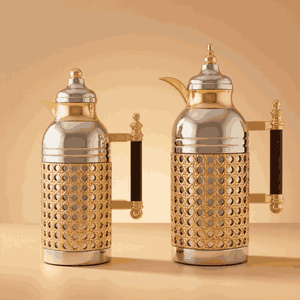 Al Saif Gallery Sarah thermos set, 1 liter, thermal glass inner container, steel outer shell - gold
