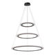 Meshkati modern chandelier, 3 circular rings, 75 watts, 3000 Kelvin, acrylic aluminum - black
