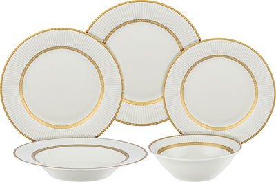 Al Saif Gallery Porcelain Dinnerware Set, 24 Pieces, Patterned - White Gold