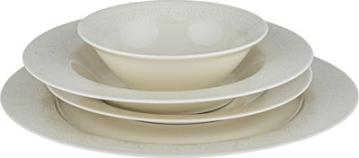 Al Saif Gallery Porcelain Dinnerware Set, 24 Pieces, Embossed, Round - White
