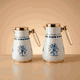 Al Saif Gallery Oasis Thermos Set, 0.75/1 Liter, 2 Pieces, Glass Inner Container, Stainless Steel Outer Body, Push Button, Transparent Handle - Pearl White Blue