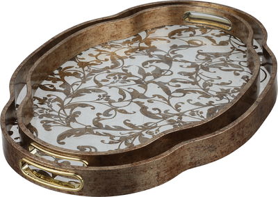 Al Saif Gallery Glass Serving Set, 2 Pieces, Wooden Frame - Gold Pattern