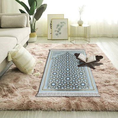 Back Comfort Andalusian velvet prayer rug, 2.5 cm thick, 120 x 80 x 2.5 cm - Light Blue