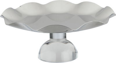 Al Saif Gallery Stainless Steel Serving Stand, 27.7x27.7x12 cm, Transparent Base - Transparent Silver