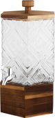 Al Saif Gallery Glass Drink Dispenser, 18.5x18.5x33 cm, Wooden Base and Lid - Transparent Wooden