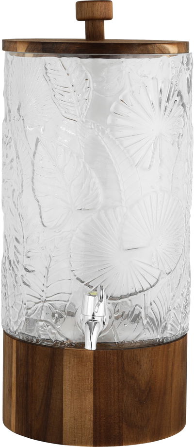 Al Saif Gallery Glass Drink Dispenser, 18.5x18.5x38 cm, Wooden Base and Lid - Transparent Wooden