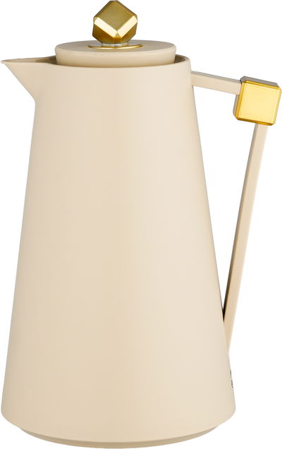Everest Diamond Plastic Thermos, 1 Liter, Glass Inner Container, Push Button - Light Beige Gold