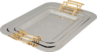 Al Saif Gallery Stainless Steel Serving Tray Set, 3 Pieces, Gold Handle - Silver Gold