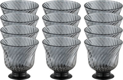 Amber Arabic Coffee Cup Set With Glass Platess, 12 Pieces, 80 Ml, Black Base - Clear