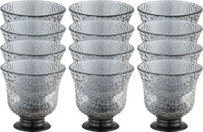 Amber Arabic Coffee Cup Set With Glass Platess, 12 Pieces, 80 Ml, Black Base - Clear