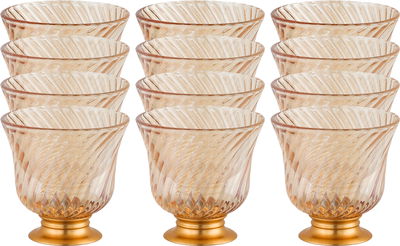 Amber Arabic Coffee Cup Set With Glass Platess, 12 Pieces, 80 Ml,Gold Base - honey Clear