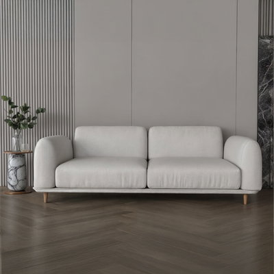 Modern Swedish wood sofa, 225x87x45 cm, boucle fabric - off-white