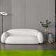 Modern Swedish wood sofa, 210x82x40 cm, boucle fabric - white