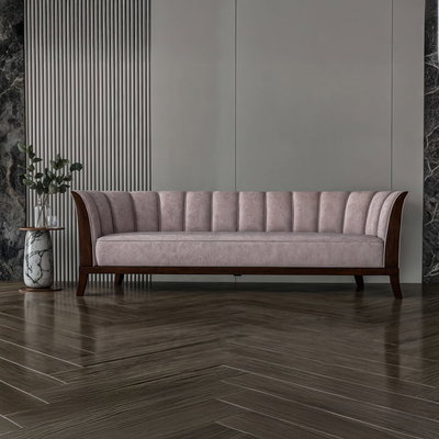 Modern Swedish wood sofa, 220x83x45 cm, Chanel fabric - Mocha