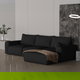 Modern Swedish wood sofa, 265 x 160 cm, chenille fabric - black