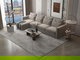 Modern L-shaped Swedish wood sofa, 340 x 160 cm, Chanel fabric - light beige