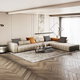 Modern L-shaped Swedish wood sofa, 340 x 230 cm, velvet fabric - beige