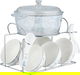Golden Gallery Porcelain Glass Soup Set, 16 Pieces, Embossed - Translucent White