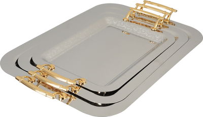 Al Saif Gallery Stainless Steel Serving Set, 3 Pieces, Rectangular, Gold-Silver Handle