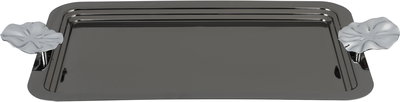 Al Saif Gallery Stainless Steel Serving Tray, 43x26.5x2.2 cm, Rectangular, Silver Handle - Black Silver