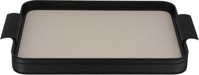 Al Saif Gallery Stainless Steel Serving Tray, 39.5x27x3.6 cm, Rectangular, Leather, Two Handles - Black Light Brown