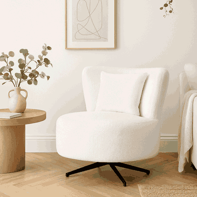 Modern Metal Chair, 85×80×75 Cm, Boucle Fabric - White