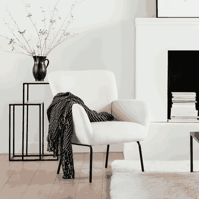 Modern Metal Chair, 98×72×80 Cm, Boucle Fabric And Foam - White