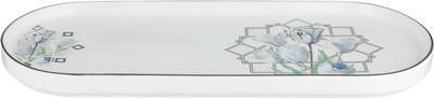 Al Saif Gallery Porcelain Dessert Serving Dish, Sky Blue Rose Design, 36x16x2 cm - Multicolor