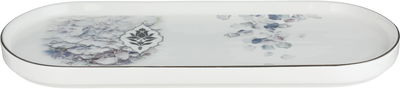 Al Saif Gallery Porcelain Dessert Serving Dish, Silver Floral Pattern, 31x14x2 cm - Multicolor