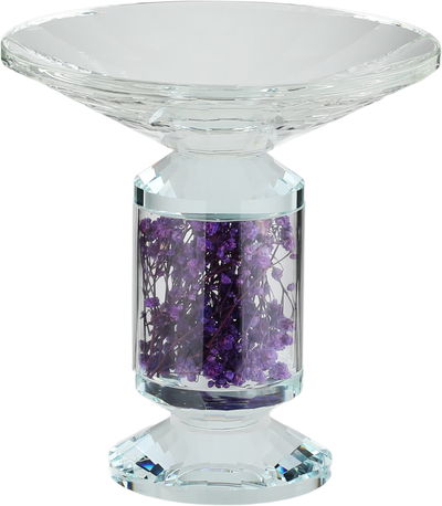 Al Saif Gallery Glass Serving Stand, Decorated With Mauve Flowers, Round, 15X15X16 Cm - Clear