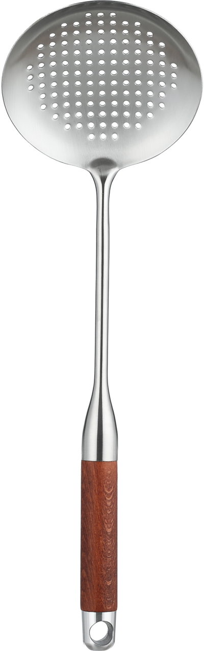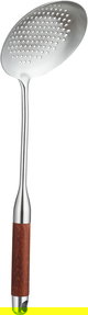 Al Saif Gallery Stainless Steel Serving Spoon, 12x39 cm, Perforated, Wooden Handle - Silver