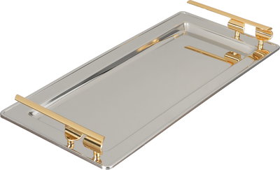 Al Saif Gallery Steel Serving Tray, 40x18.5x5 cm - Silver Gold