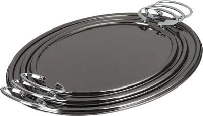 Al Saif Gallery Stainless Steel Serving Tray, 3 Pieces - Glossy Black Silver